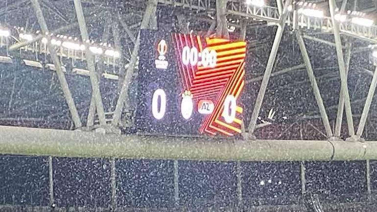 Rams Park’ta maçın devre arasında kar yağışı tekrar başladı.